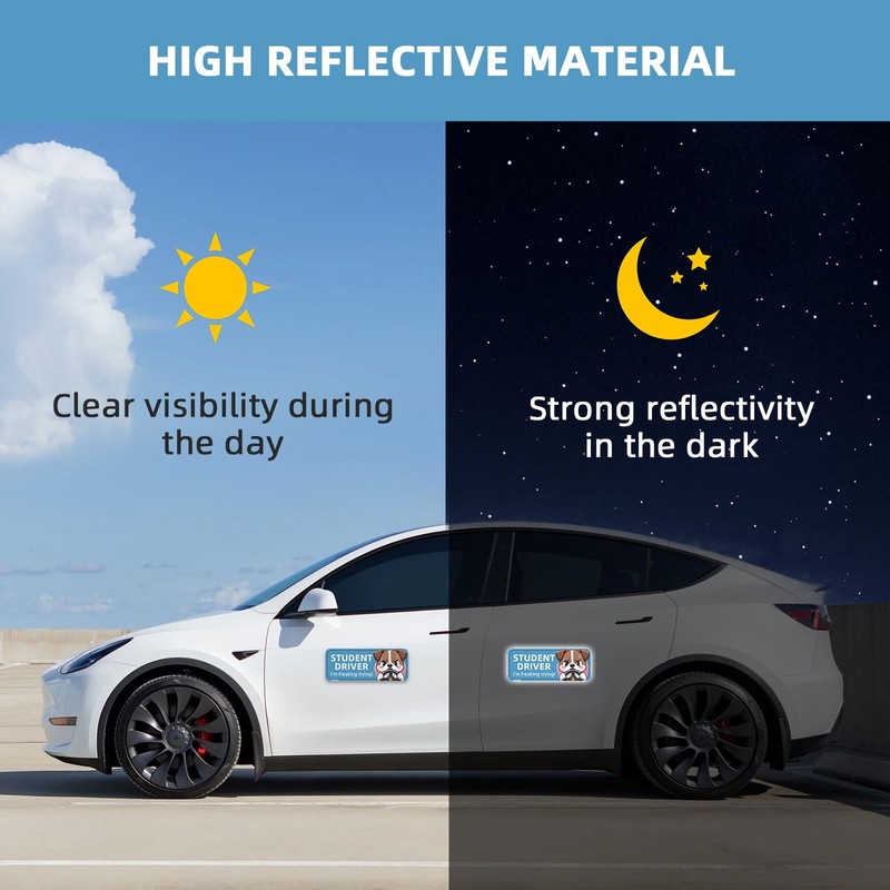 - HIGHLY REFLECTIVE: Our student driver magnet for car are made of highly reflective and weather-resistant materials, which enhance visibility when driving in low-light conditions or at night. Blue student driver magnet ensures that the headlights of oncoming vehicles can highlight your warning message. Moreover, these student driver magnets can withstand various weather conditions, maintaining vibrant colors and a strong adhesive bond.