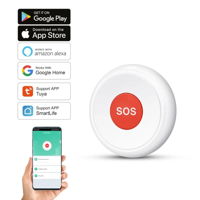 Botón de Pánico SOS Inalámbrico WiFi para Sistema de Alarma, Compatible con Smart Life y Tuya Smart, Alerta de Emergencia, Portátil, Fácil Instalación, Cobertura WiFi, Uso en Casa, Oficina y Negocio