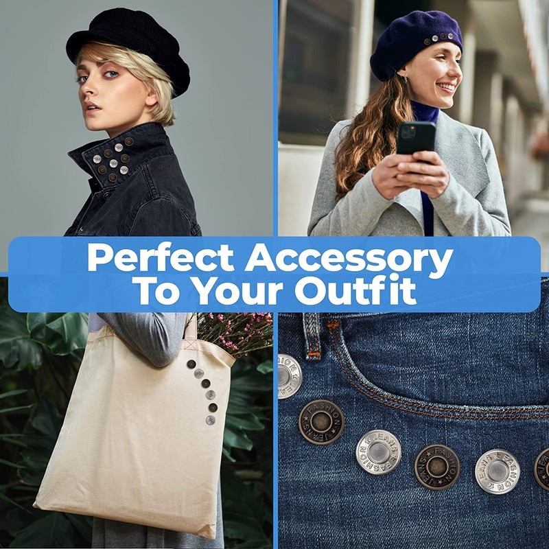 Los botones de mezclilla desmontables se pueden usar para botones de mezclilla hechos de telas como camisas para adultos, jóvenes y niños, jeans, tirantes, chaquetas, bolsos, trajes y abrigos. No daña la tela y el tamaño se puede ajustar.