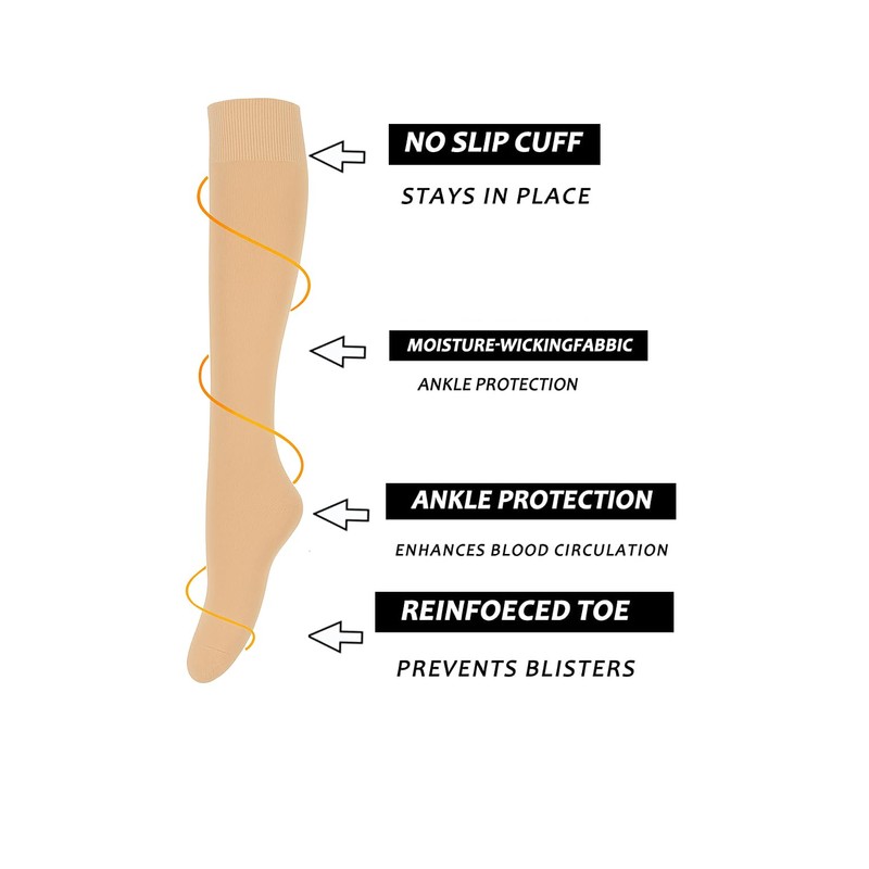 - Comfortable Material:Made of high-quality nylon and Polyester material.They fit closely from your toe to knee, energize your skin. Lightweight and breathable high performance fabric keeps an optimal temperature, wick moisture away from your skin to ensure you feel fresh and comfortable. These compression socks are easy to care for and won't be worn out in daily life. They are durable and machine wash.