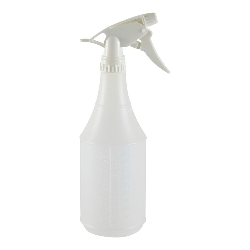 - Clear bottle with embossed scale encourages user to properly proportion chemicals.