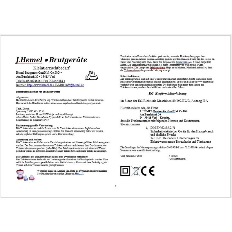 The new generation in water heaters sets new standards in terms of safety and performance. Includes CE designation for direct connection to 230 V applications, simplifying configuration and saving time. This warming are suitable for in stables approved and offer completely safe frost protection setting. Your drink is simply placed on the warming and thanks to a controlled heat release cool running bulb of our bottle warmer is the bath edge ice freeze. Your pet thus have fresh water is always available – even in the winter.