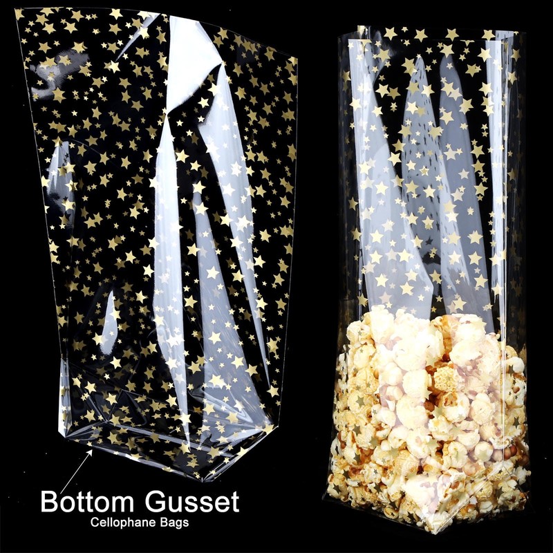 - 【Great for Parties and Handicrafts】Elegantly display your party favors and baked goods, create sophisticated gusseted cellophane bags for any event. With their elegant design, they are ideal for wrapping party favors and small toys, goodies, small popcorn boxes or buckets, pails for Halloween, gift basket, and Christmas gifts.