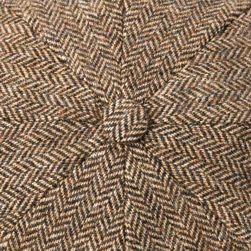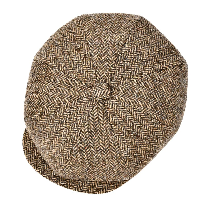BOTVELA Men's 8 Panel Wool Blend Newsboy Flat Cap Herringbone Tweed Hat (Herringbone Light Khaki, 7 3/8)
