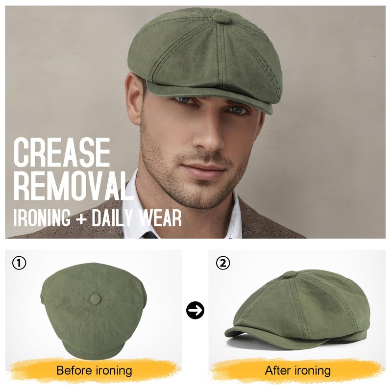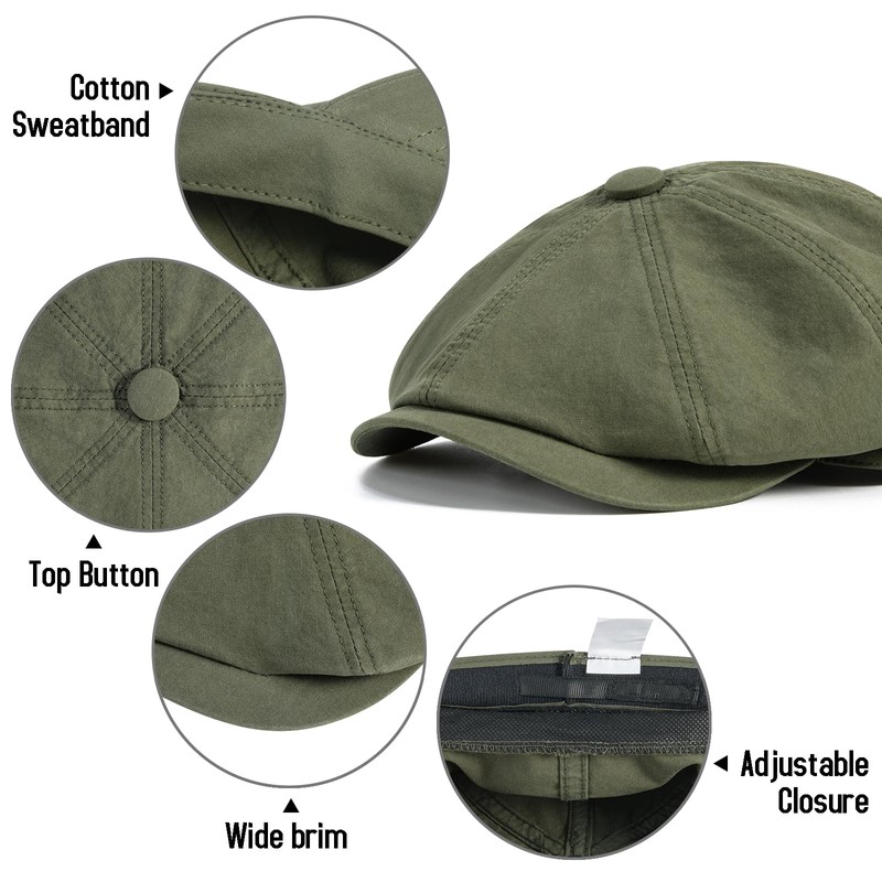 - Men Newsboy Hat: eight-panel top button design, cotton sweatband, invisible velcro closure allows this ivy cap for men has an adjustment space of 1-2cm