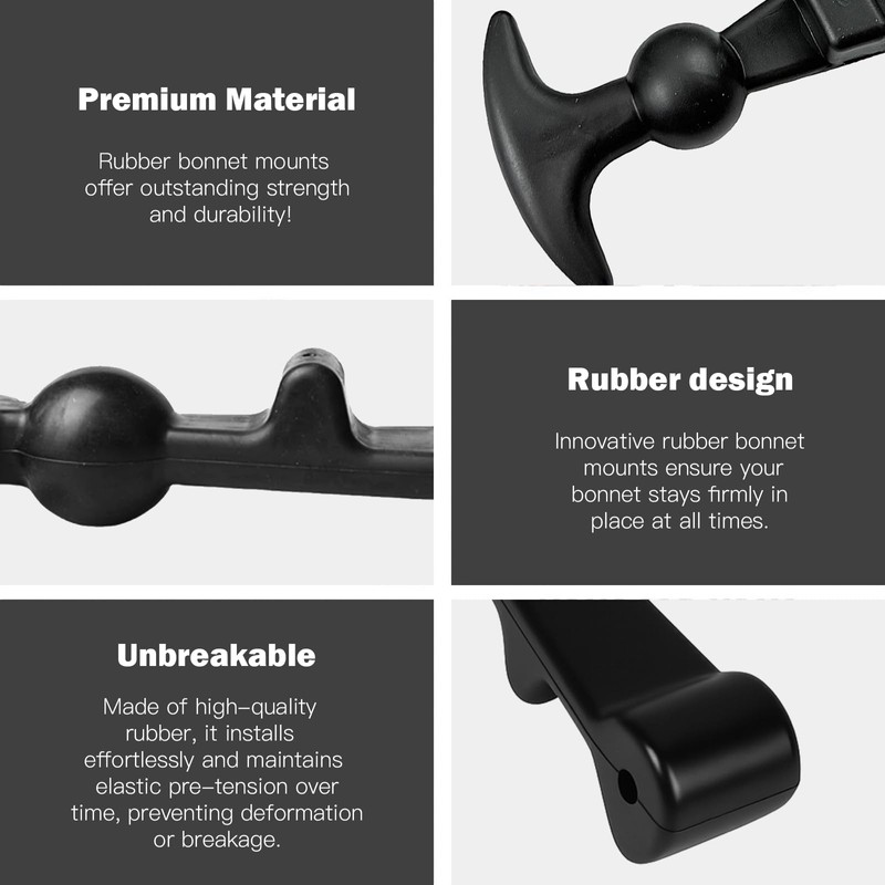 - Materials The hood bracket is made of high quality durable rubber, with excellent strength and pressure resistance. No matter what type of pressure or tension it is subjected, the hood remains stable and secure.