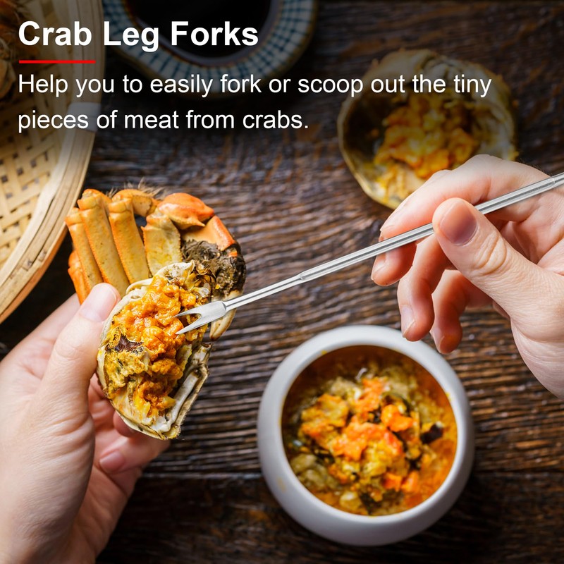 - Professional Crab Crackers Set: You will get 2 crab crackers, 8 lobster sheller, 8 crab leg fork. Not only for nuts and walnuts, but also for most seafood, such as lobster, king crab and crab. They're a great gift for anyone who likes seafood or nuts.