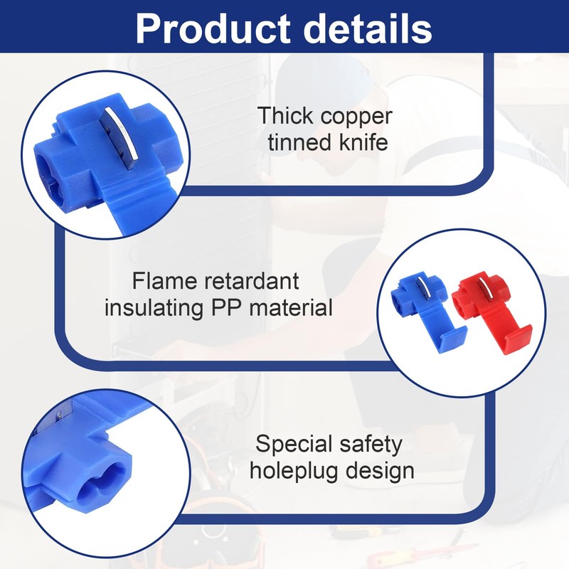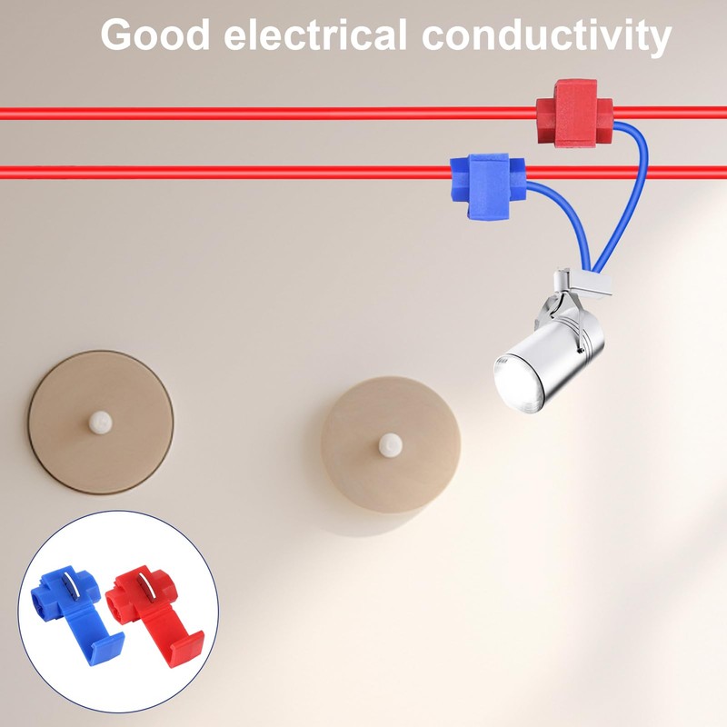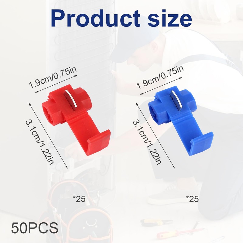 - Clamp connector quick branch: the economical package contains 50 quick connect connectors (25 red + 25 blue). The red terminals are suitable for fine threads from 0.5 to 1.0 mm² and the blue terminals are suitable for threads from 1.75 to 2.5 mm². The colour coding system clearly visualises the different specifications at a glance, effectively avoiding incorrect wiring.