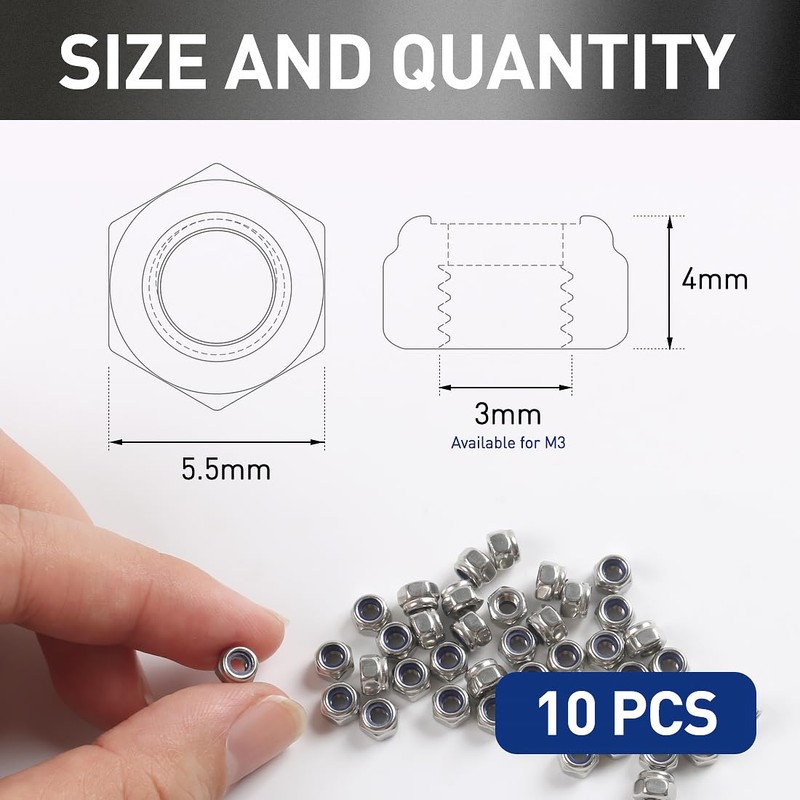 - Package list: nuts set contains 10 pieces M3 nuts.