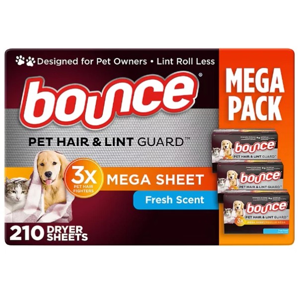 Bounce Pet Hair and Lint Guard Mega Dryer Sheets, 210 ct. - Fresh Scent