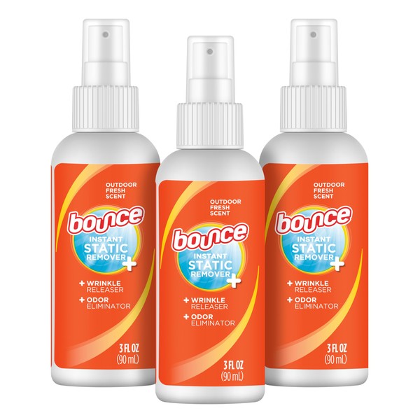 Bounce Anti Static Spray, 3 in 1 Instant Anti Static Spray & Instant Wrinkle Release, Odor Eliminator & Fabric Refresher, Travel Size (3 Oz,Pack of 3)