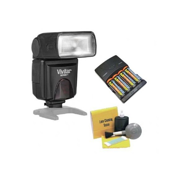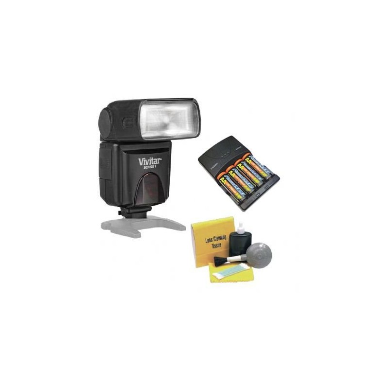 Bounce, Zoom, Swivel Head. (Alternative to Sony HVL-F42AM) + High Powered AC Rapid Charger with 4AA 2900 Mah Batteries + Nwv Direct 5 Piece Cleaning Kit