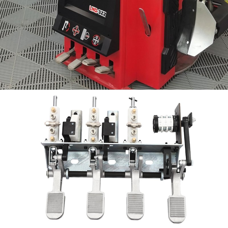 The tire changer machine steel frame is an advanced tire changer machine car air control valve meticulously designed for easy removal of automotive tires. It features a groundbreaking four-pedal design that combines stability and versatility to improve shop productivity.