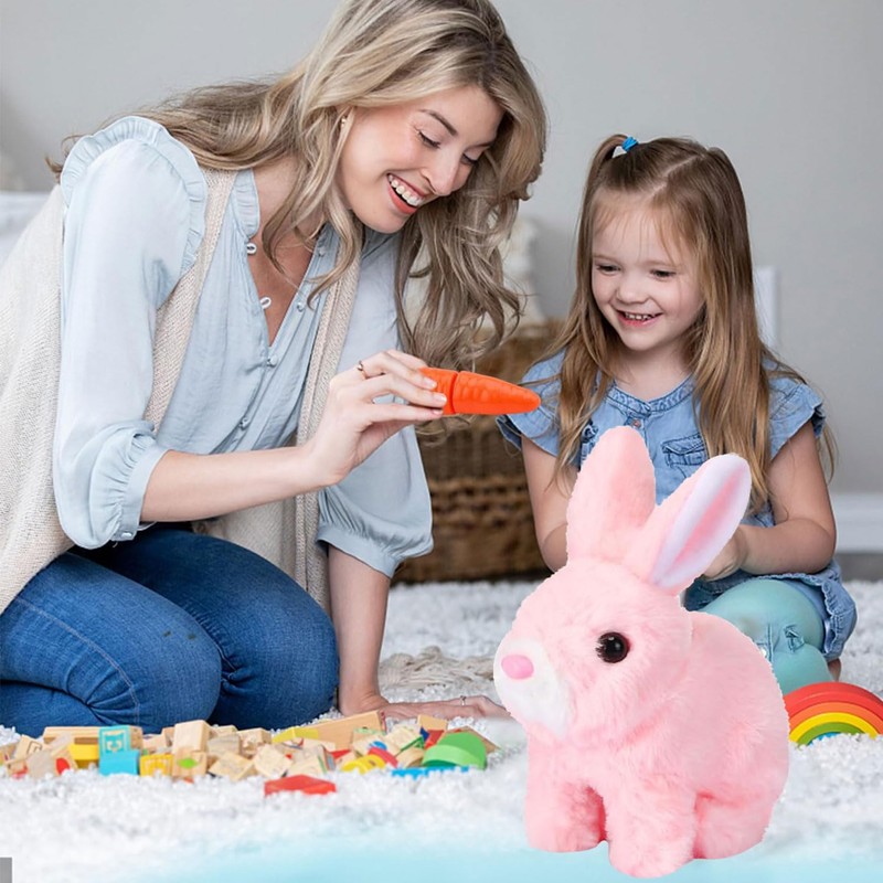- Bouncing and wobbling: this is a vibrant rabbit that is characterised by bouncing, wobbly and twitching nose. This interactive rabbit jumps forward and makes a sound while the ears of the toy begin to shake and the mouth of the toy chews like a real animal, cute enough to attract children's attention. It is a good rabbit toy to make your child happy after opening the switch.