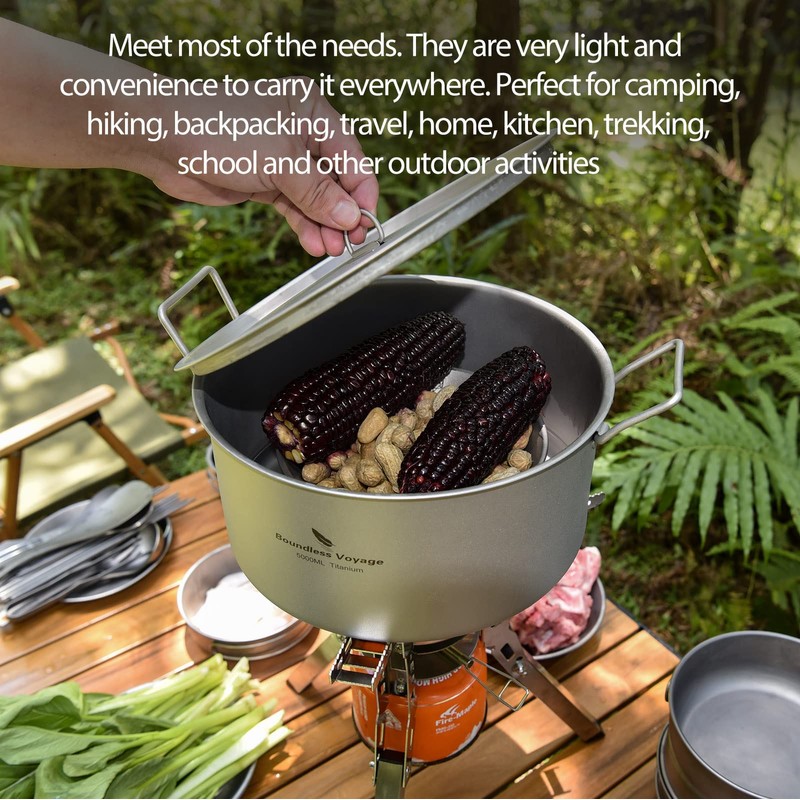 Boundless Voyage Outdoor Camping Titanium Pot 5.0L Stockpot with Lid Folding Handle Hiking Picnic Portable Big Capacity Soup Pot Home Kitchen