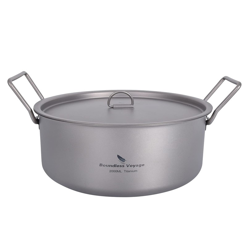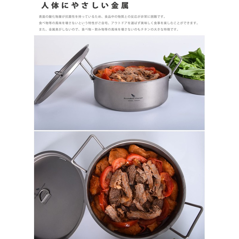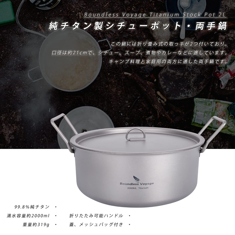 Boundless Voyage Ti2054C Titanium Pot with Lid 8.5 inches (21.5 cm), Pure Titanium, 11.9 oz (319 g), Lightweight, Rustproof, Outdoor Use, Camping, Double Handle, Deep 2,000 ml, With Folding Handle, Uncoated