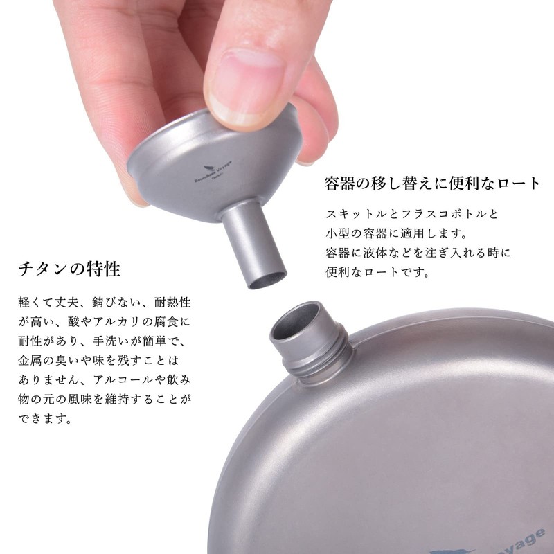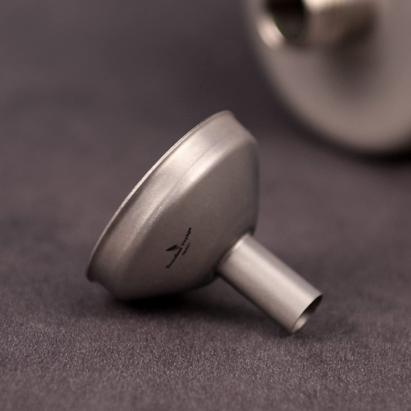 - [Product Details] Material: 99.8% Titanium; Total Weight: Approx. 0.2 oz (4 g); Size (Approx.): Upper Diameter: 1.3 inches (34 mm), Small Diameter: 0.3 inches (8 mm), Height: 1.2 inches (30 mm); Set Contents: Funnel x 1, Storage Bag x 1