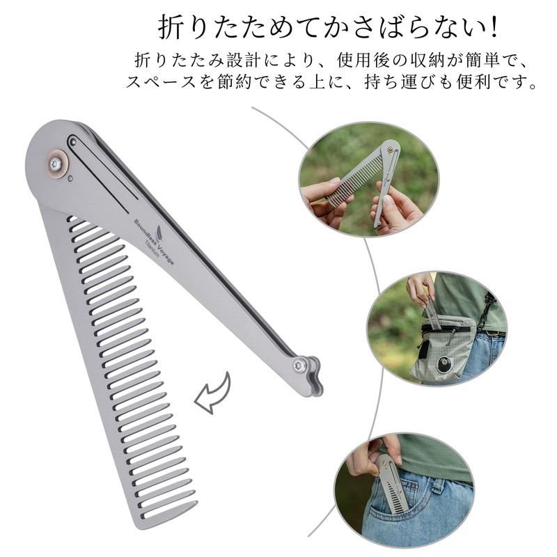 - PURE TITANIUM COMB - Lightweight and durable titanium folding comb. Excellent heat resistance, can withstand dryer heat, more durable than plastic Made of pure titanium, it is safe for people with sensitive skin and skin
