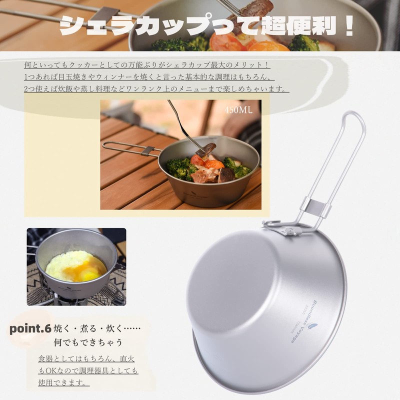 - [Product Details] Material: Pure titanium; Capacity: Approx. 15.3 fl oz (450 ml); Scale: 5.1 / 10.1 fl oz (150 / 300 ml); Weight: Approx. 1.9 oz (53 g); Size: Φ 5.1 oz (13 + 9.5 x 5 cm); Set Includes: 1 x shella cup