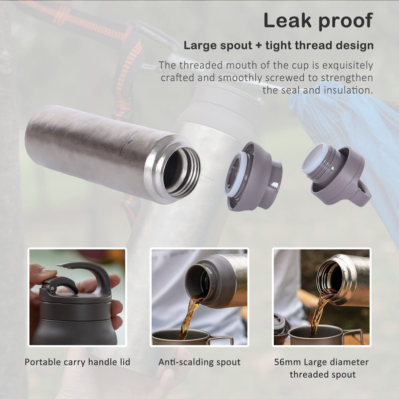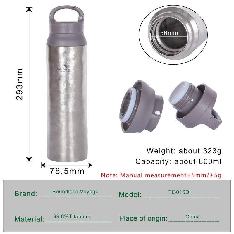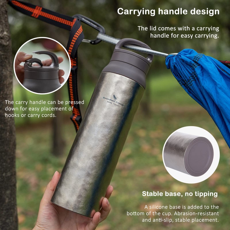 Boundless Voyage Titanium Water Bottle Vacuum Insulated Double Wall Wide Mouth Flask with Lid 800ml/27oz With handle Climbing Running Outdoor A-Ti3016D
