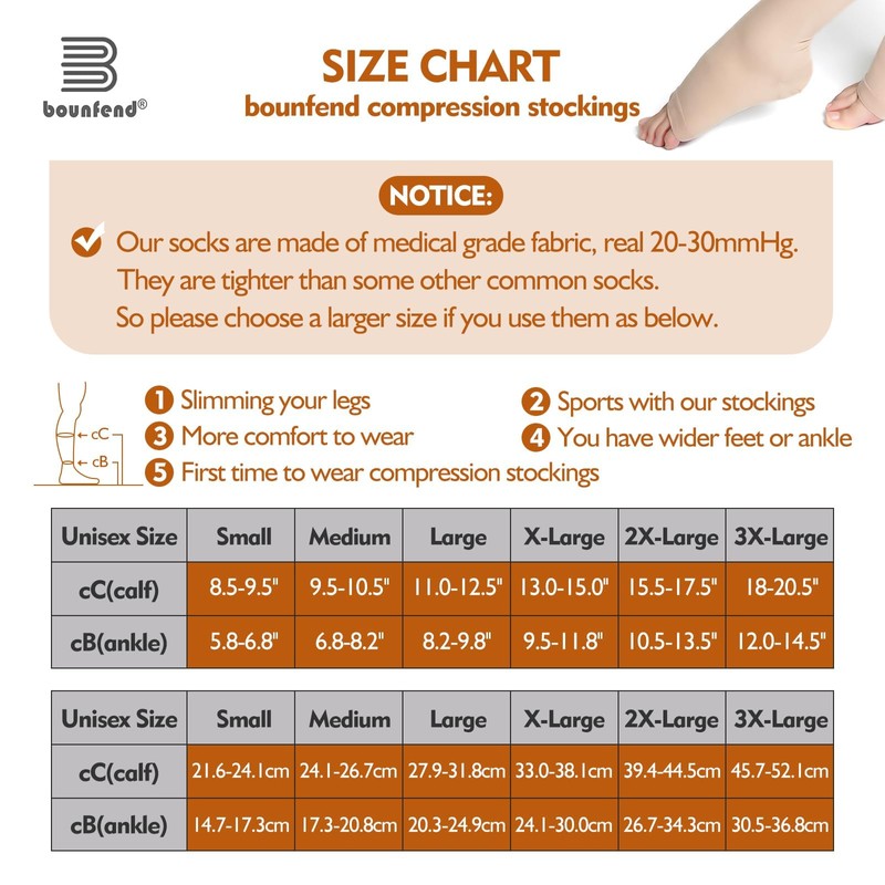 Bounfend® - Calcetines de compresión de 20 a 30 mmHg, puntera abierta hasta la rodilla, medias de grado médico para mujeres y hombres, piernas hinchadas con venas varicosas, espinillas, enfermería, viajes, Beige, Medium