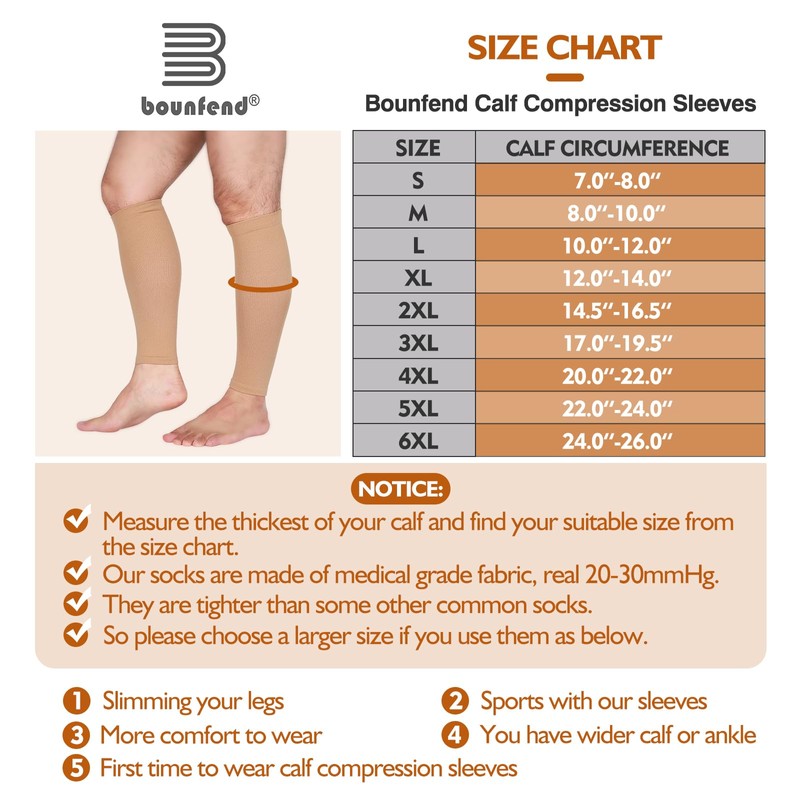 bounfend Calcetines De Compresión De Pantorrilla Para Piernas Y (20-30 Mmhg) De Talla Grande, Grado Médico Para Venas Varicosas, Hinchazón, Espinilla, Edema, Enfermeras Y Maternidad, Correr, Beige X