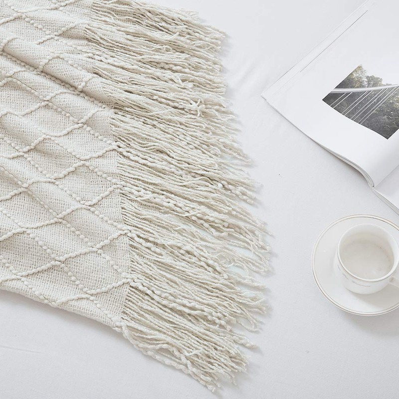 BOURINA Textured Solid Soft Sofa Throw Couch Cover Knitted Decorative Blanket,Beige, 127x228cm