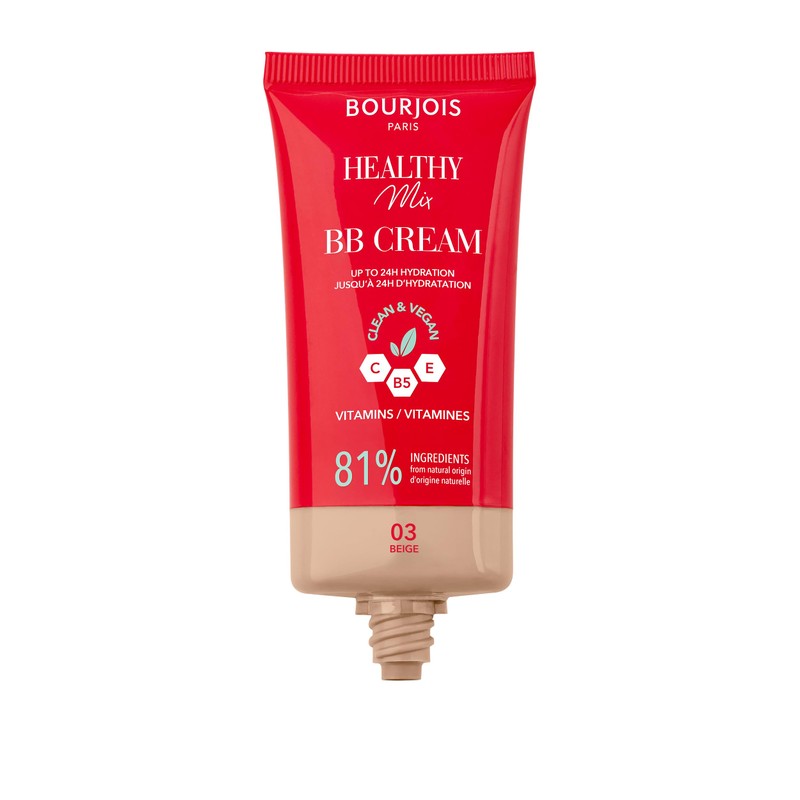 - Bourjois continues to set its standards with Healthy Mix BB Cream. This BB cream is your perfect ally for a flawless and naturally even complexion, providing homogeneous coverage with a radiant finish with the benefits of skin care. Balances skin and minimizes pores, hides fatigue and reduces blemishes, dark spots and redness. With 81% natural ingredients, the vegan and clean formula provides comfort all day long.