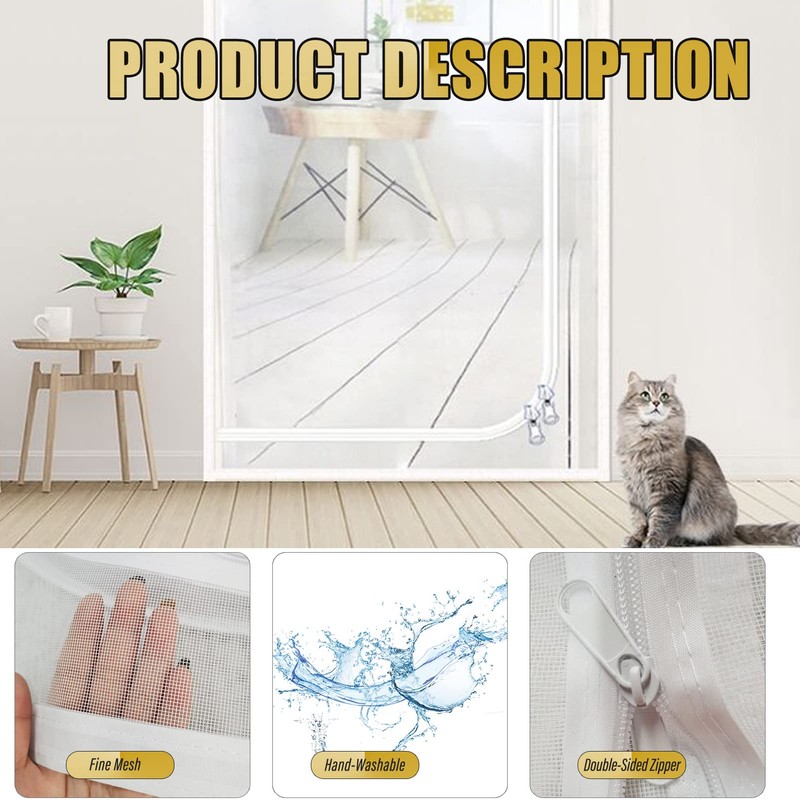 - Premium Material and Unique Design: Our cat-proof door screen made of nano-mesh material is stronger and more durable than ordinary fiberglass material, and can withstand scratches from cat's paws without breaking; we designed on the cat-proof mesh yarn Double zipper inside and outside, convenient for you to open the door screen at any time.