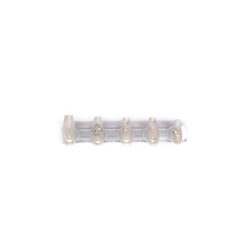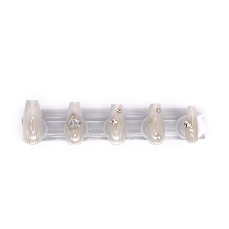 Boutique Beauty Premium Press On Nails (Royal White Diamond) – Unique, Durable, and Trendy Designs with Adhesive Tabs - Medium Coffin Shape