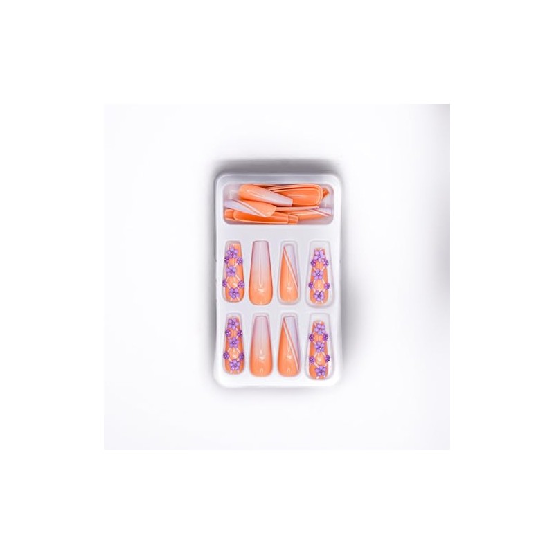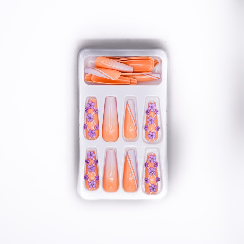 Boutique Beauty Premium Press On Nails ~ Unique, Durable, Trendy Designs with Adhesive Tabs ~ Long Coffin Shape (Lilac Blossom)