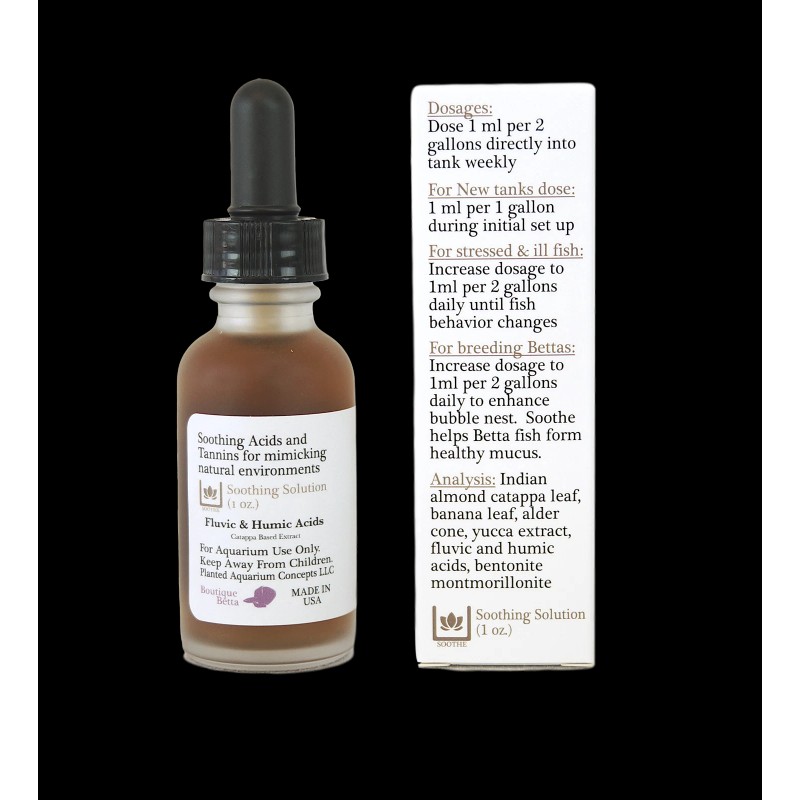 Soothe helps aquarium water mimic environments where natural tannins absorb into the aquatic habitat.