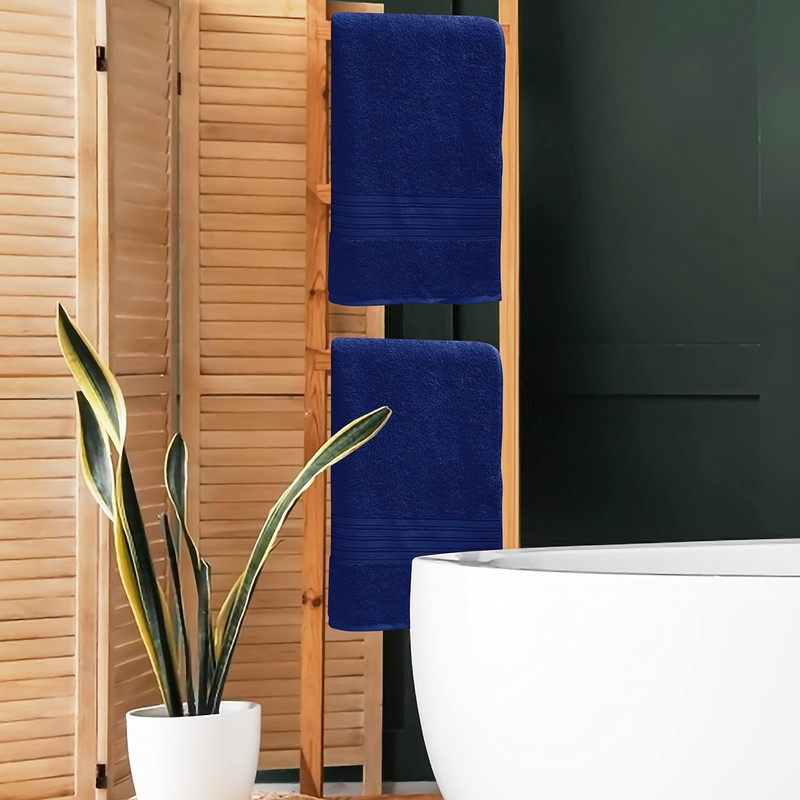 BOUTIQUO 100% Cotton 2 Pack Bath Towel Set 28x55, Eco-Friendly Large Bath Towels, Compact Quickdry Lightweight Soft & Highly Absorbent Bath Towel, Ideal for Everyday Gym Travel Camp Pool - Navy Blue