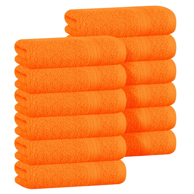 BOUTIQUO Ultra Soft Cotton Washcloths, Contains 12 Piece Face Cloths 12x12 inch, Ideal for Everyday use Face Towels, Compact & Lightweight Multi Purpose Washcloths - Orange