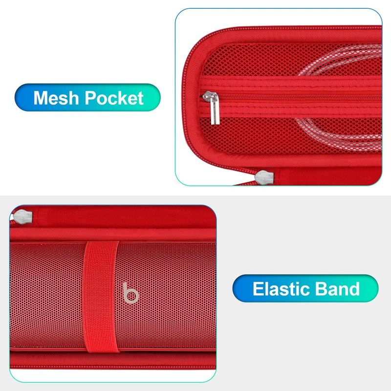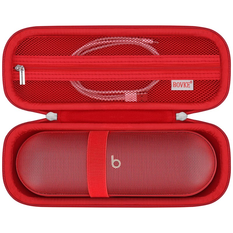 BOVKE Carrying Case Compatible with Beats Pill Wireless Bluetooth Speaker, Beats Pill Portable Speaker Holder Bag with Extra Mesh Pocket for Charging Cables, Red