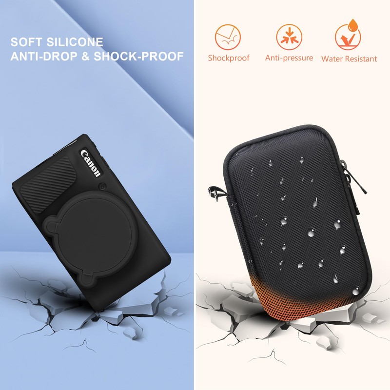 - Superior Material: The canon sx740 hs carrying case is made of durable fabric and hard EVA material, furry interior velvet lining protects your powershot sx740 case camera from scratches and dents. This silicone camera case for Canon PowerShot SX740 digital camera is made of upgrade durable silicone material, shockproof and non-slip. Add an extra layer for your canon sx740 hs camera, protect your sx740 camera from drops and bumps.