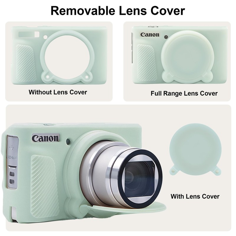 - This canon sx740 hs cover has a detachable lens cover, you can use your Canon SX730 camera with the lens cover to protect your camera lens, or you can also just use the canon sx 740hs camera without lens cover, the sx740 soft case is super soft and lightweight, protect your sx740 digital camera from scratches and dirt, sx740 rubber case east to grab, you can simply carry it wherever you go and enjoy.