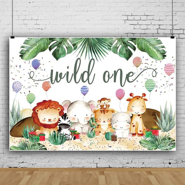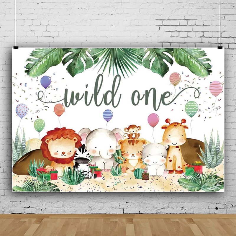 Bovlleetd 5x3ft 1st Birthday Backdrop Jungle Animals Tropical Plants Safari Photography Background Cartoon Lion Elephant Hippo Background Decorations for Boys Baby Baptist Banner