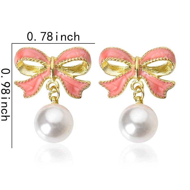 - Fashion Bow Pearl Stud Earring for Women Teen Girls: The pink bow drop earrings for women is sweet and elegant, whether attending parties, weddings, ceremonies, or daily trips, the pearl bow earrings can make you charming and stand out in the crowd, suitable for any outfit and style you want, lively yet dignified, the generous and appropriate design makes you charming and fashionable, fancy accessories decor for women girls