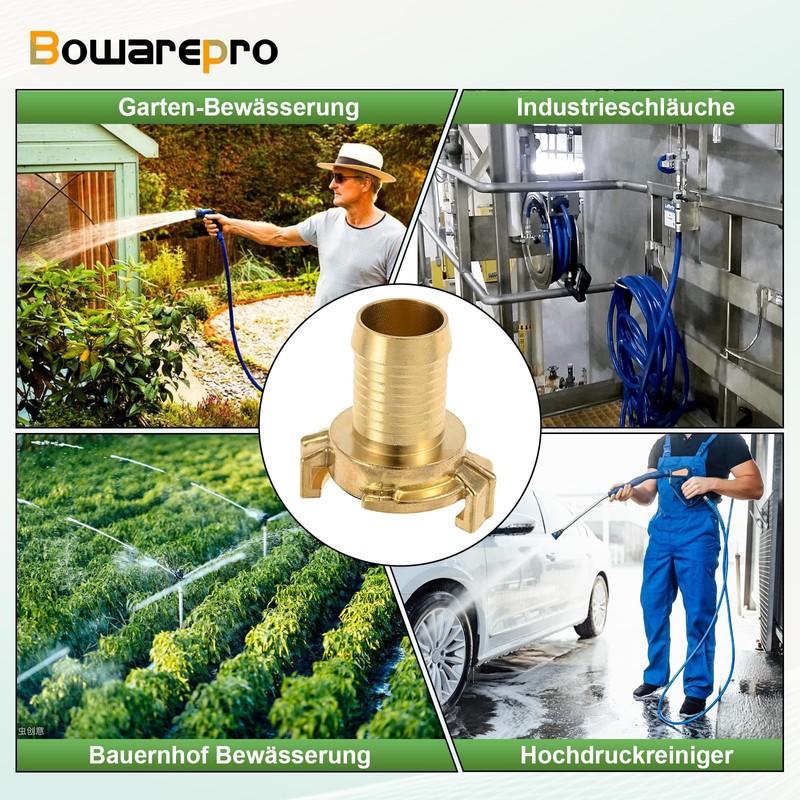 - Areas of application: Bowarpro brass quick coupling hose piece are suitable for 26 mm (1 inch) hoses. They are ideal for use in agriculture, industry and crafts.