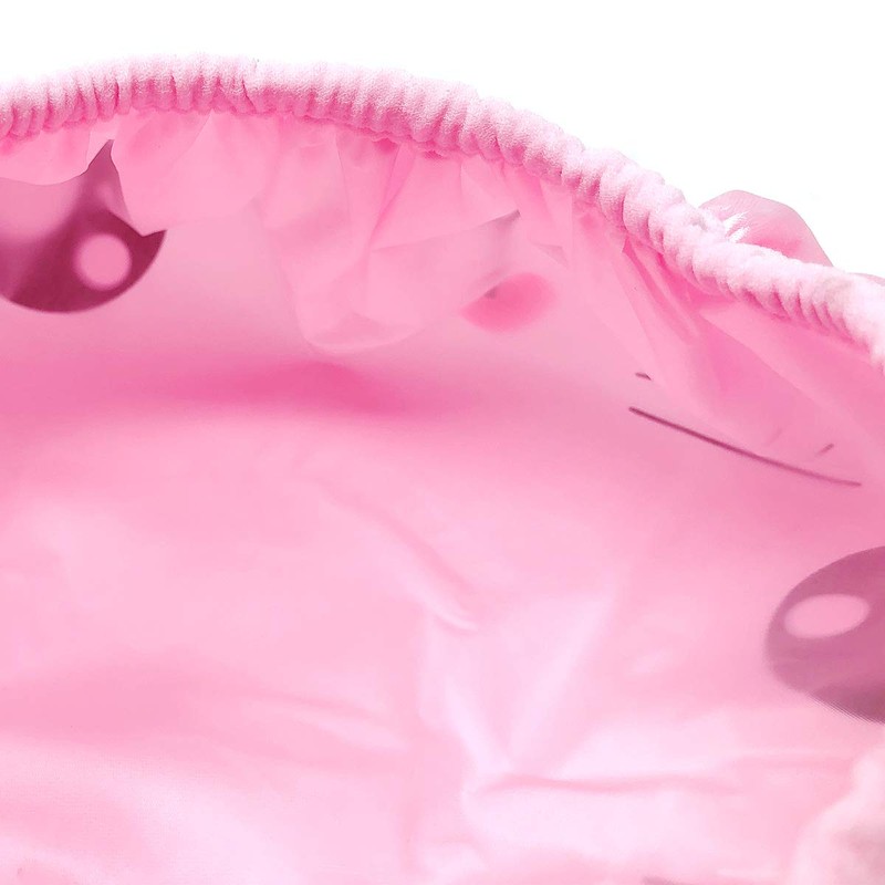 - Outside layer consists of satin in a fun and playful pattern. Inside layer consists of waterproof EVA for keeping hair dry.