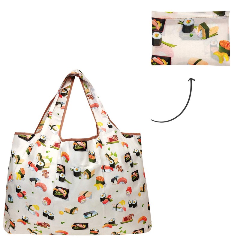 Bowbear Foldable Nylon Reusable Shopping Grocery Bag (Set of 3), Macarons, Sushi, Fruit
