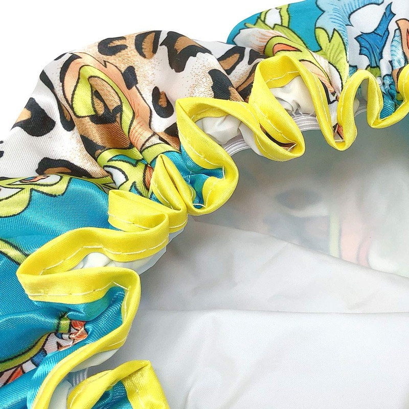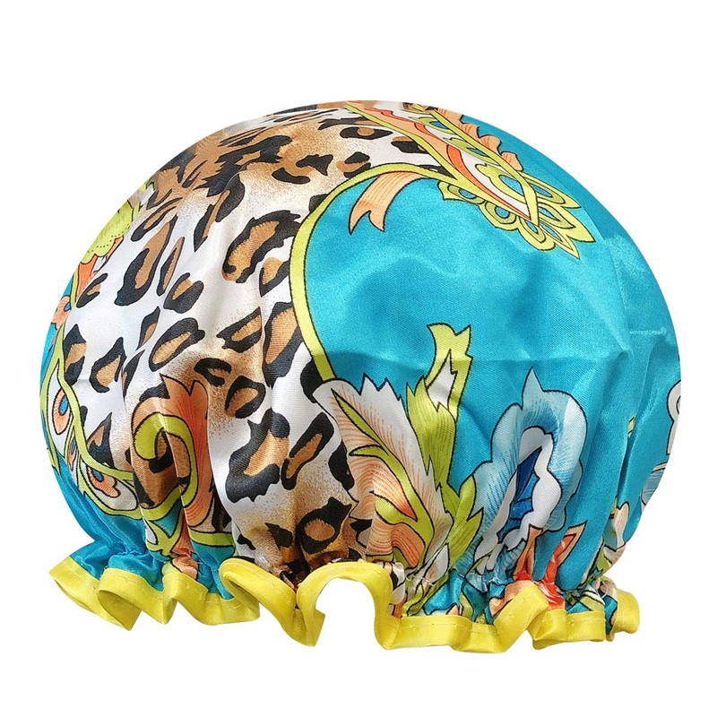 Bowbear Women's Double-Layer Reusable Waterproof Shower Caps, Leopard Floral