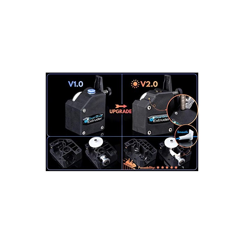 - Upgrade Highlights: 1. The position of the gear and the accuracy of all screw holes are calibrated. 2. Modified the new buckle, both sides of the V2.0 version of the DDB extruder support filament running thru in and out (it has no specified direction, and you are able to use either side of the material ports)