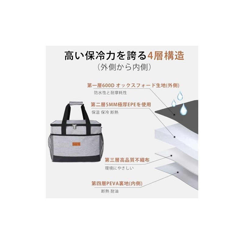 - The Secret to Keeping Warm for Hours - 4 Layers of High Quality Insulation: The outer layer of the cooler is made of 600D Oxford material, which is waterproof, wear-resistant, and fade-resistant. The second layer is made of 0.2 inch (5 mm) extra thick EPE material, which has excellent heat retention, cold insulation, and insulation. The third layer is made of high quality non-woven fabric that is environmentally friendly, and the fourth layer PEVA lining, and the inner aluminum foil interface uses hot press process for an excellent seal. Durable and functional cooler bag. The 4-layer construction allows you to use it not only for cold drinks but also for refrigeration and preservation