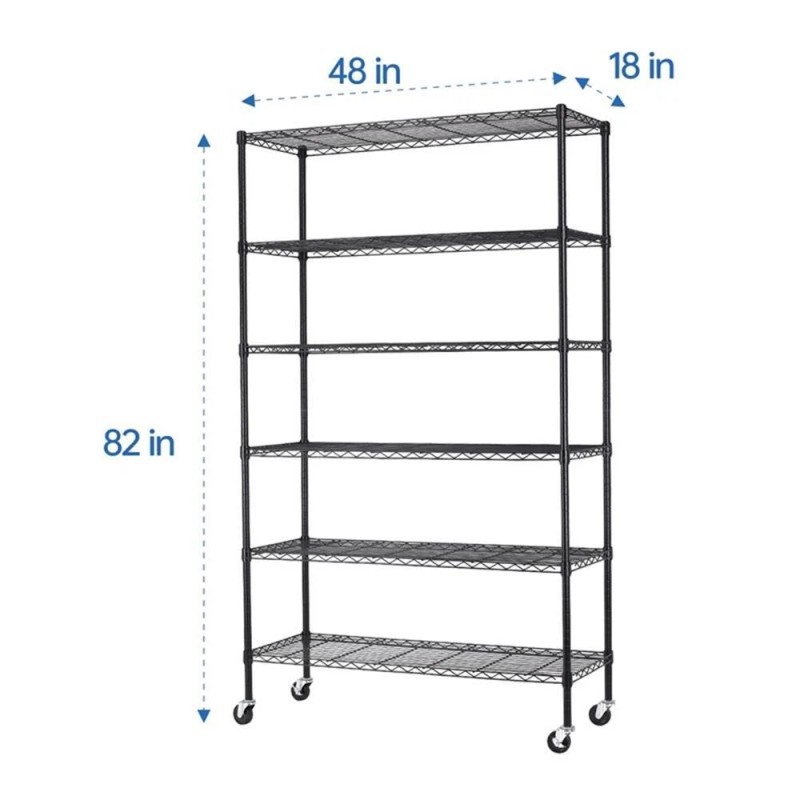 Introducing our 6-tier black metal storage shelf, the ultimate solution for all your organizational needs. Engineered to be both reliable and efficient, this shelf offers a range of features that guarantee your satisfaction. The frame of this shelf is constructed using NSF-certified hard steel, prioritizing your safety above all else. With its robust design, you can trust that it will withstand heavy use without compromising stability. Each shelf is fully adjustable, allowing you to customize the spacing to accommodate items of various sizes. We understand the importance of longevity, which is why our shelves are crafted with rust and oxidation resistance in mind. This ensures that your shelf will maintain its pristine condition, even in humid or damp environments. The superior weight capacity of our shelf further enhances its durability, providing a sturdy foundation for your storage items. Say goodbye to clutter and welcome a well-organized space with our reliable storage solution.