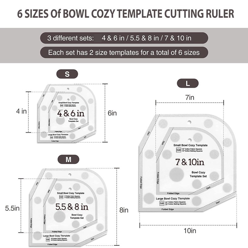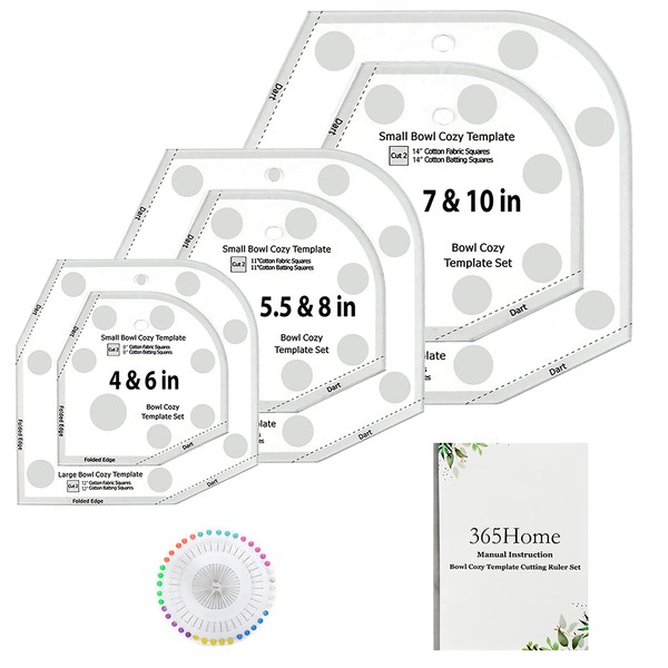 365Home Bowl Cozy Template 3 Sizes, Bowl Cozy Pattern Template Cutting Ruler Set with 40 Pcs of Sewing Pin and Manual Instruction