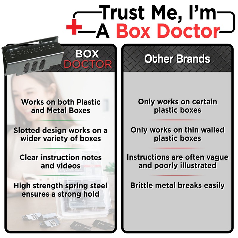 - 🔌 FULL COLOR INSTRUCTIONS - Inside the resealable packaging you will find easy-to-read full color instructions along with your Box Doctor! Follow the step by step instructions to install your electric box clips.