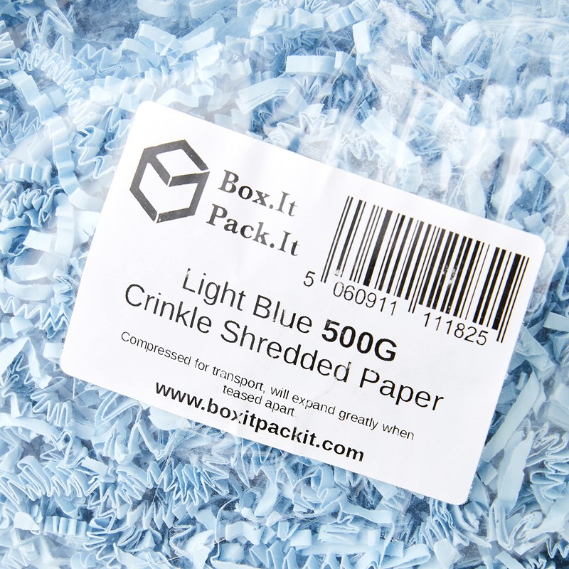 Box.it.pack.it Shredded Crinkle ZigZag Kraft Paper, Light Blue, 500g