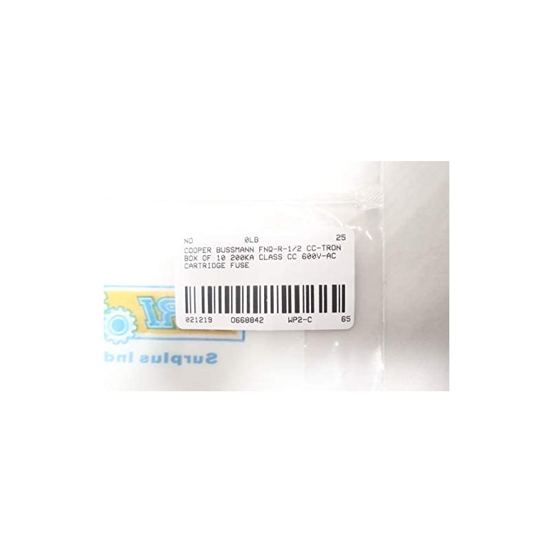 Box of 10 COOPER BUSSMANN FNQ-R-1/2 CC-TRON Fuse Class CC 1/2A 600V-AC